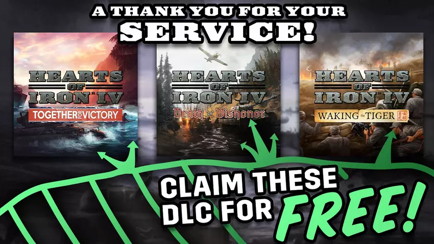Het Zweedse bedrijf heeft aangekondigd dat Steam-gebruikers tot 21 maart drie belangrijke uitbreidingen voor Hearts of Iron IV gratis kunnen krijgen.