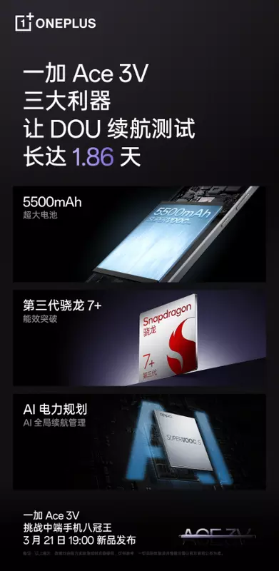 OnePlus Ace 3V met Snapdragon 7+ Gen 3-chip en 5.500mAh batterij debuteert op 21 maart