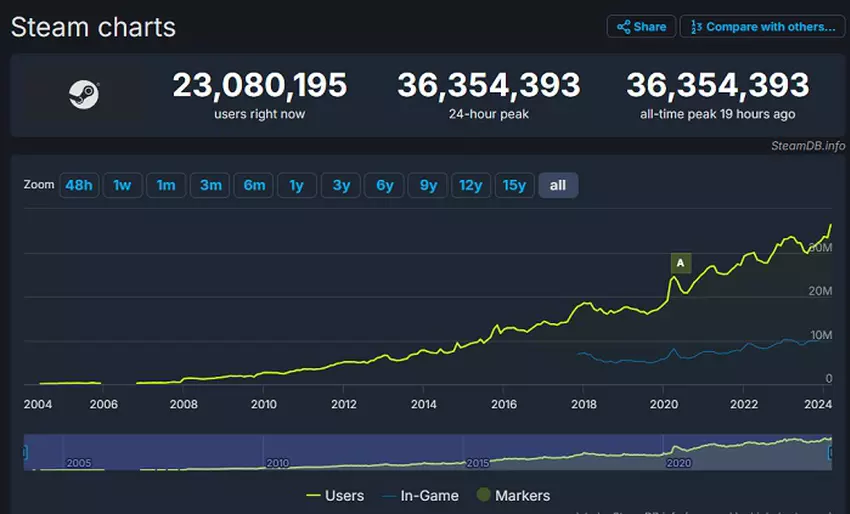 Steam heeft een nieuw record - meer dan 36 miljoen gebruikers waren in het weekend op de dienst
