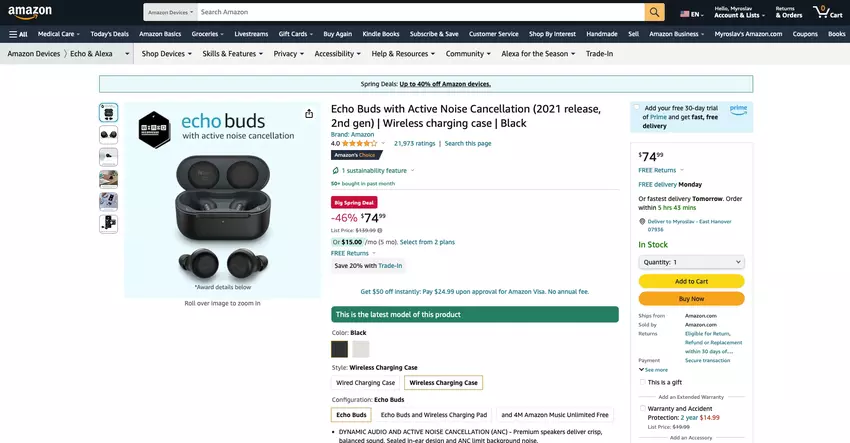 De korting is $65: Amazon heeft de prijs van Echo Buds (2e Gen) verlaagd