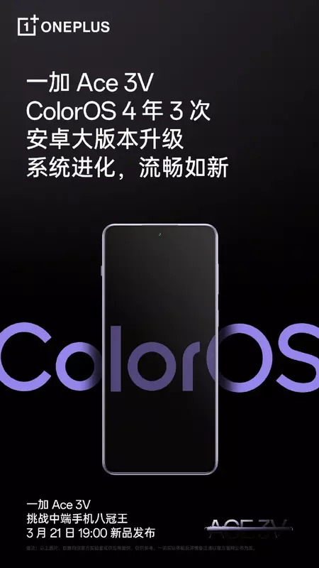 Een nieuwe promotieposter onthult informatie over de tijdlijn van de ondersteuning van de smartphone. OnePlus Ace 3V zal worden uitgebracht met het op Android 14 gebaseerde ColorOS 14 besturingssysteem, en de fabrikant belooft het 3 grote OS-updates. Met andere woorden, gebruikers kunnen nieuwe versies van het besturingssysteem verwachten tot en met Android 17.