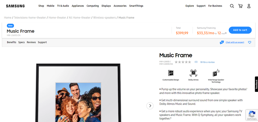 Samsung heeft onlangs een nieuw type speaker aangekondigd, de Music Frame. Dit product werd voor het eerst onthuld op CES 2024 en is nu beschikbaar voor pre-order in de VS. Het Music Frame (HW-LS60D) kost $400 en is bijna klaar voor verzending. Als je in de VS woont en vandaag een pre-order plaatst op Samsung.com, zou het op 1 april 2024 bij je thuis moeten zijn.