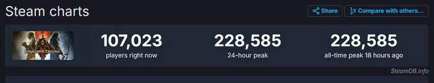 In het eerste weekend na de release telde de online piek van Dragon's Dogma 2 op Steam bijna 230 duizend mensen. Dit is een geweldig resultaat, niet alleen tegen de achtergrond van de heide van het spel, maar ook in vergelijking met andere nieuwigheden.