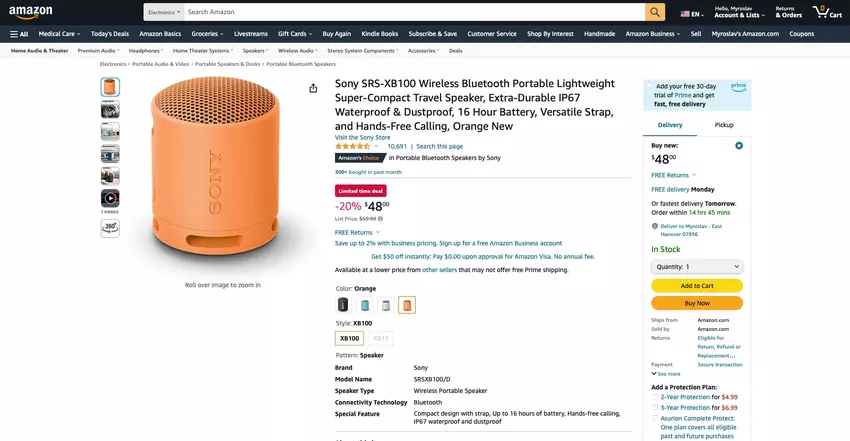 Sony SRS-XB100 op Amazon: draadloze luidspreker met IP67-bescherming en tot 16 uur autonomie met 20% korting