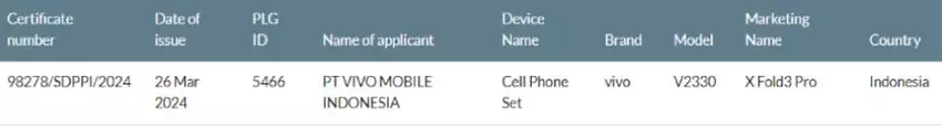 De gadget met modelnummer V2330 is gespot in de database van het Indonesische certificeringsbureau SDPPI. De wereldwijde release van de vivo X Fold 3 Pro is dus niet ver weg. De smartphone debuteert waarschijnlijk in april of mei.