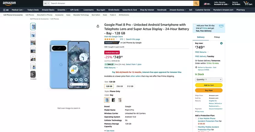 Huidige vlaggenschip smartphone: Google Pixel 8 Pro met 128 GB opslag is beschikbaar op Amazon met een korting van $250