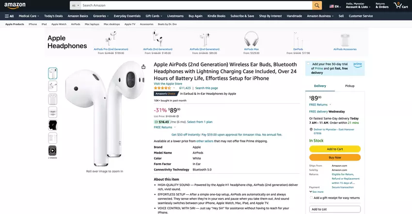 Aanbieding van de dag op Amazon: Apple AirPods 2 voor € 89 (€ 40 korting)