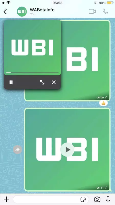 Met de nieuwste bètaversie van WhatsApp kun je picture-in-picture ook gebruiken als je video's bekijkt die rechtstreeks op de app zijn geplaatst. Volgens het rapport is de verbeterde beeld-in-beeld-functie beperkt tot het bekijken van video's in de app, dus het is niet mogelijk om de modus te gebruiken wanneer je overschakelt naar een andere app.