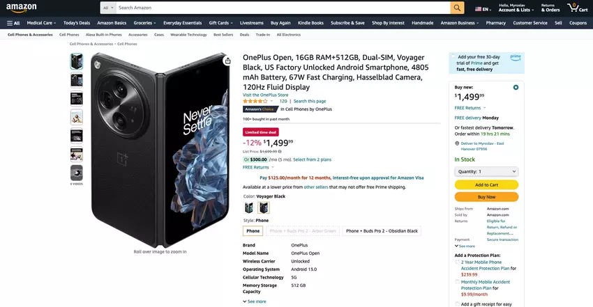 OnePlus Open opvouwbare smartphone met Snapdragon 8 Gen 2 chip verkrijgbaar op Amazon met $200 korting