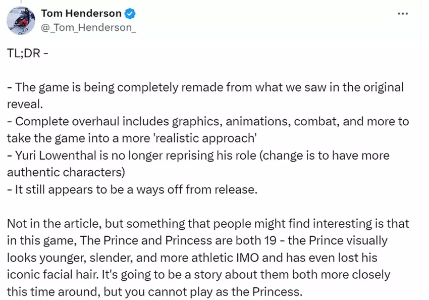 Gisteren zei insider Tom Henderson dat gamers alles moeten vergeten wat ze hebben gehoord en gezien over de remake van Prince of Persia: The Sands of Time, omdat het spel helemaal opnieuw en op basis van andere concepten wordt gemaakt.