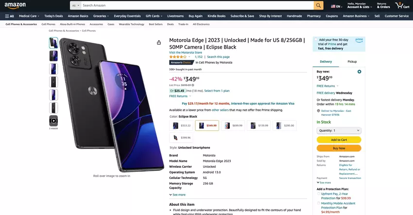 We hebben het over het Motorola Edge (2023) model voor $299.99. De gadget is verkrijgbaar in de kleur Eclipse Black en in een 8/256 GB versie.