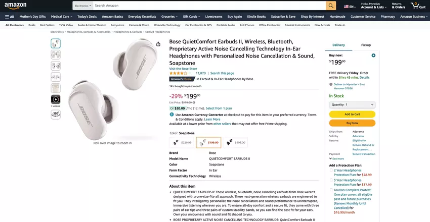 We hebben het over het Bose QuietComfort Earbuds II-model in de kleuren Triple Black en Soapstone. Het apparaat kost $229.99 $279.00, -18%.