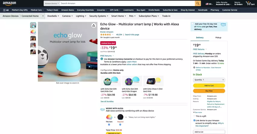 Naast de JBL Tune 230N kun je nu ook de Echo Glow slimme lamp met korting kopen op Amazon.