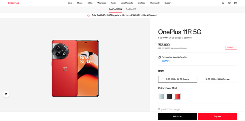 OnePlus 11R Zonnerode kleurvariant heeft een nieuwe geheugenupgrade voor $395