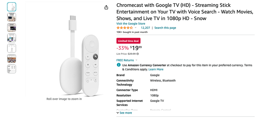 Je kunt nu Chromecast met Google TV (HD) met korting kopen bij Amazon.