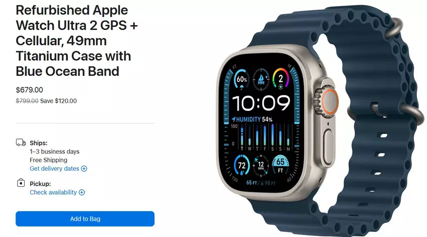 Op dit moment is de Apple Watch Ultra 2 met het label "Refurbished" verkrijgbaar met blauwe, oranje of witte bandjes. Het model kost $679, wat $120 goedkoper is dan de nieuwe gadget.