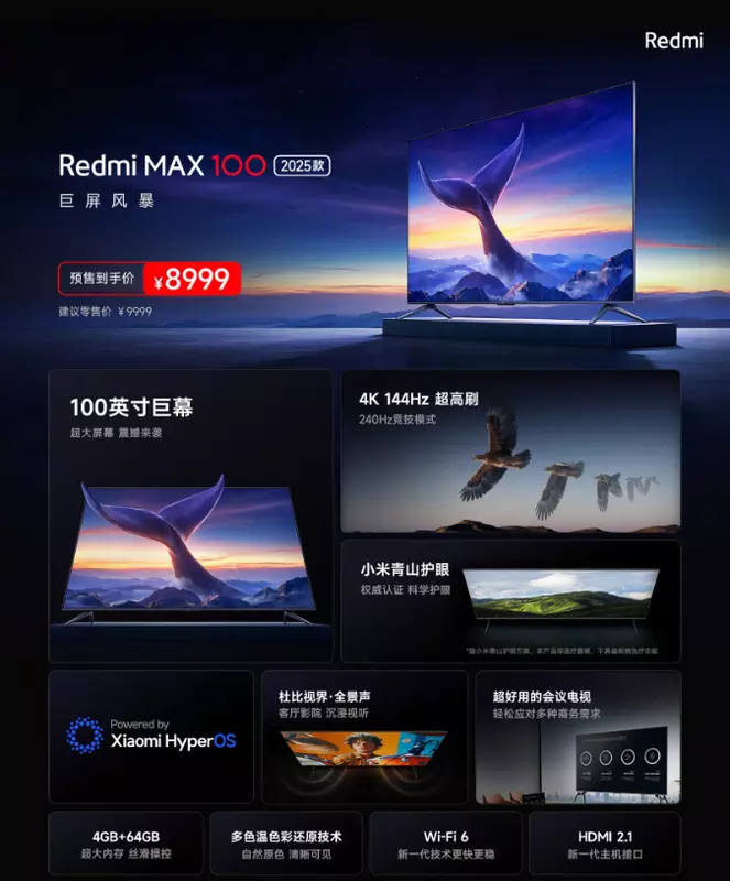 Xiaomi heeft de Redmi Max TV 2025 onthuld: een 100-inch smart TV met een scherm tot 240Hz en HyperOS aan boord