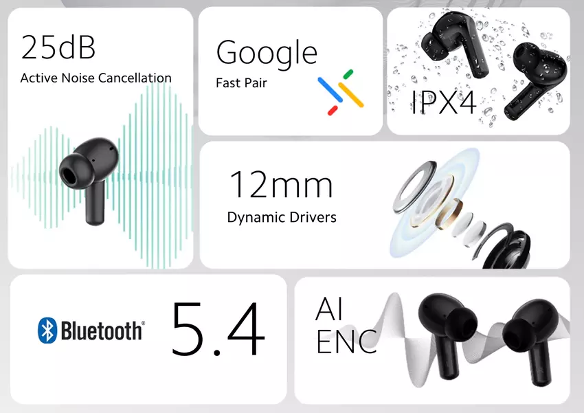 Het model heeft een in-canal design, Bluetooth 5.4 en 12mm drivers. De nieuwigheid ondersteunt actieve ruisonderdrukking en Google's Fast Pair-functie. Het apparaat heeft een lage geluidsvertragingsmodus (tot 60 ms) en IPX4/IP54-waterbescherming (hoofdtelefoon/hoes). De batterij gaat tot 5 uur mee zonder hoesje en tot 30 uur met hoesje. De hoofdtelefoon wordt opgeladen via de USB-C-poort.