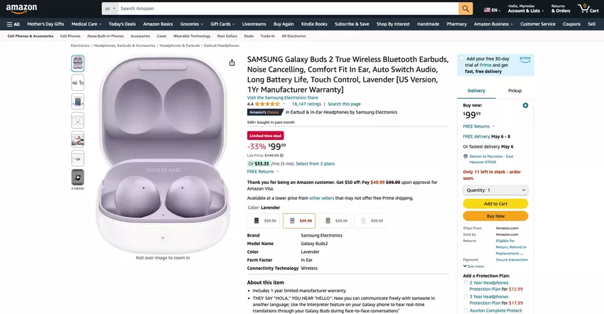 Samsung Galaxy Buds 2 verkrijgbaar op Amazon met $50 korting