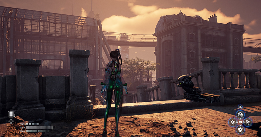 Visueel heb ik ook geen klachten over de game. Stellar Blade is erg gedetailleerd geworden. Er is een verscheidenheid aan locaties met veel kleine details die de wereld aanvullen en helpen bij de onderdompeling. De personages hebben goede animaties, zowel van hun gezichten als de manier waarop ze bewegen. Tijdens gevechten verschijnen er constant verschillende effecten op het scherm: vijandelijk bloed, vonken van slagen, flitsen, explosies en andere. Soms was het zelfs moeilijk om weg te kijken van het spel. Op sommige locaties wil je zoveel mogelijk zien, want het lijkt erop dat de auteurs goed werk hebben geleverd.