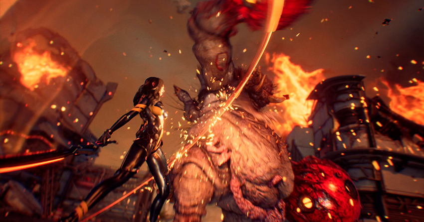 Oké, je kunt dus vechten, aanvallen afslaan en nieuwe combinaties leren, maar hoe zit het met schieten? De eerder genoemde Adam en Lily rennen nooit met ons mee. Waarom? Omdat alleen Eve de gymtraining niet heeft overgeslagen om een Nytiba-moordenaar te worden. Maar alleen hardlopen zou toch saai zijn? Shift Up dacht van wel en gaf ons een drone waarmee onze personages constant communiceren. Dit kleine mannetje kan niet alleen het terrein scannen en communiceren, maar ook met één knop veranderen in een langeafstandswapen. Er zijn ook genoeg munitieopties. Het is aan jou of je hem wilt gebruiken als shotgun, aanvalsgeweer of granaatwerper. Is het goed? Het is geweldig, kan ik je vertellen. Op sommige plekken kun je het spel niet uitspelen zonder te kunnen schieten.