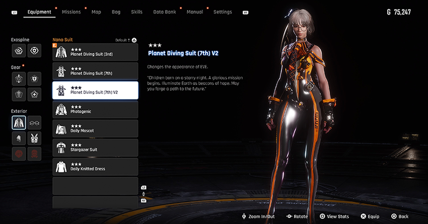 En laten we de verschillende kostuums, brillen, oorbellen en kapsels niet vergeten waarmee je Eve kunt bijwerken. Dit is een puur cosmetisch element, maar het maakt het spel er niet slechter op.