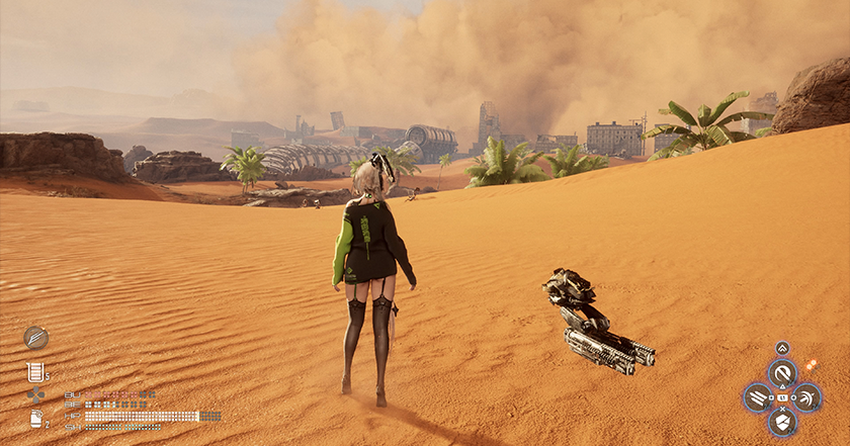 Niet alles blijft echter beperkt tot halfopen locaties of gangen, want twee keer worden we in de open wereld gegooid. De eerste keer was ik verrast, want ik had niet verwacht dit in Stellar Blade te zien. Er zijn slechts twee verschillen tussen de open wereld en semi-open locaties: de aanwezigheid van extra taken en torens die geactiveerd moeten worden. Maak je geen zorgen, er zijn geen 100 torens zoals in Ubisoft-games. Er zijn er maar twee voor het hele spel. Ze zijn nodig om kampen vrij te spelen, waar we het later over zullen hebben.