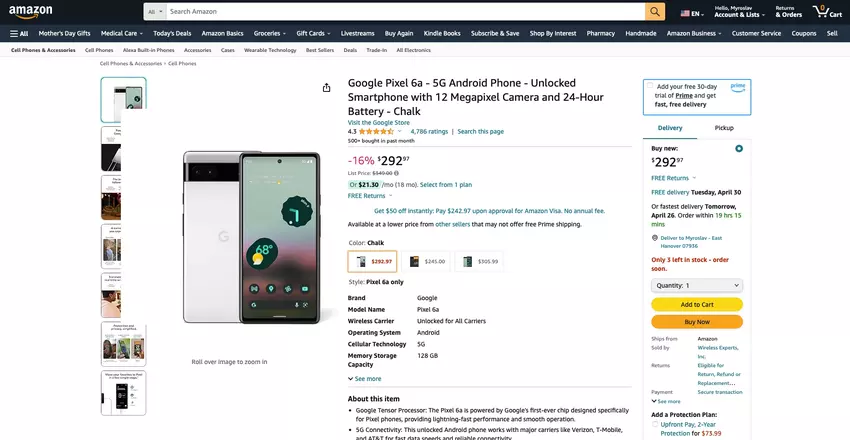 Aanbieding van de dag: Google Pixel 6a op Amazon voor minder dan $300 (16% korting)