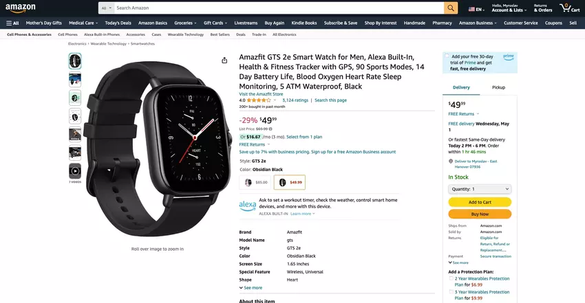 Amazfit GTS 2e met Alexa-spraakassistent is verkrijgbaar bij Amazon voor $49 (29% korting)