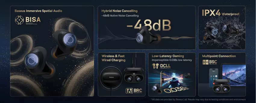 Het model heet Baseus Bowie MA10s. De noviteit heeft een in-canal ontwerp en een actief ruisonderdrukkingssysteem (tot 48 dB). De hoofdtelefoon heeft een equalizer en verschillende werkingsmodi: Bass Mode, Music Mode en Game Mode met lage geluidsvertraging.