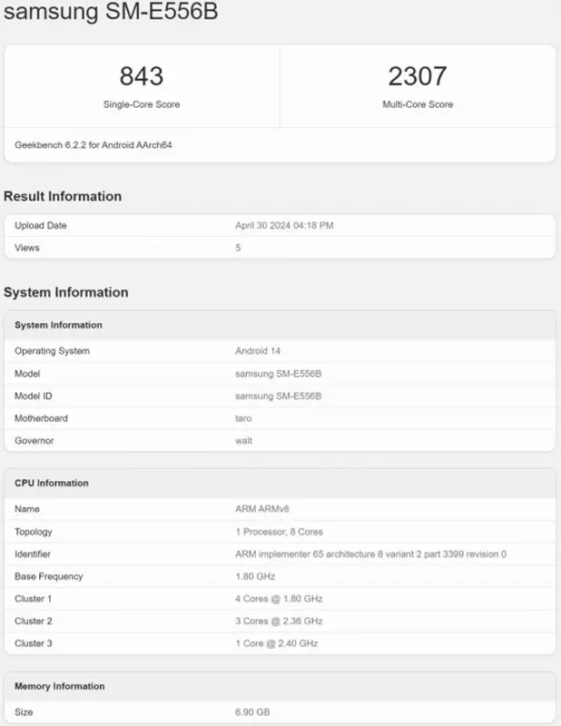Samsung Galaxy F55 is verschenen in Geekbench met belangrijkste specificaties