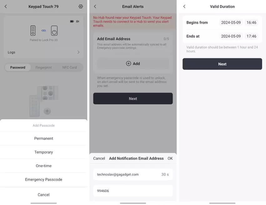 Daarna was het mogelijk om het slot te bedienen met een kaart, numerieke codes en vingerafdrukken. Er zijn nog een paar andere opties naast permanente wachtwoorden: