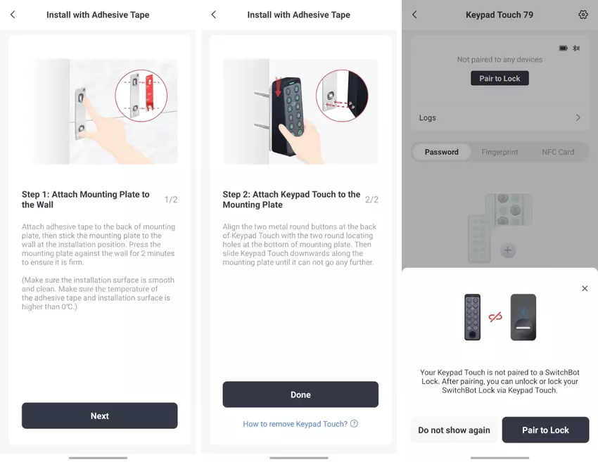 Daarna hoefde ik alleen nog maar de Keypad Touch op de metalen montageplaat te scharnieren en het apparaat in de app te koppelen aan de SwitchBot Lock Pro.