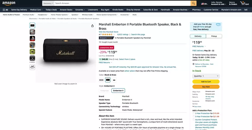 Marshall Emberton II met IP67-bescherming en 360-graden geluid te koop op Amazon met $50 korting