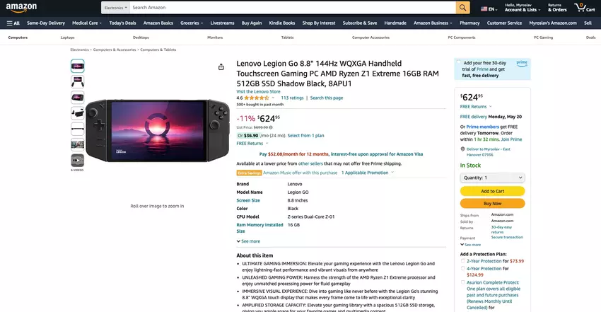 Lenovo Legion Go op Amazon: draagbare gameconsole met 144Hz-scherm en AMD Ryzen Z1 Extreme-chip voor $75 korting