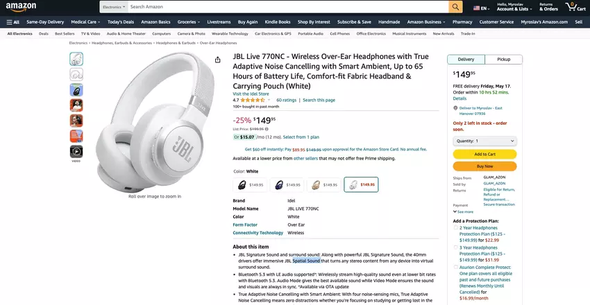 JBL Live 770NC op Amazon: draadloze hoofdtelefoon met adaptieve ANC en tot 65 uur autonomie met $50 korting