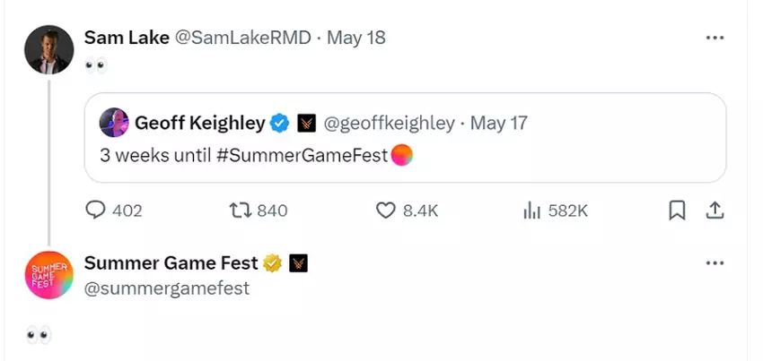 - Summer Game Fest-producent en gastheer Geoff Keighley publiceerde een bericht om ons eraan te herinneren dat de zomershow over drie weken plaatsvindt;