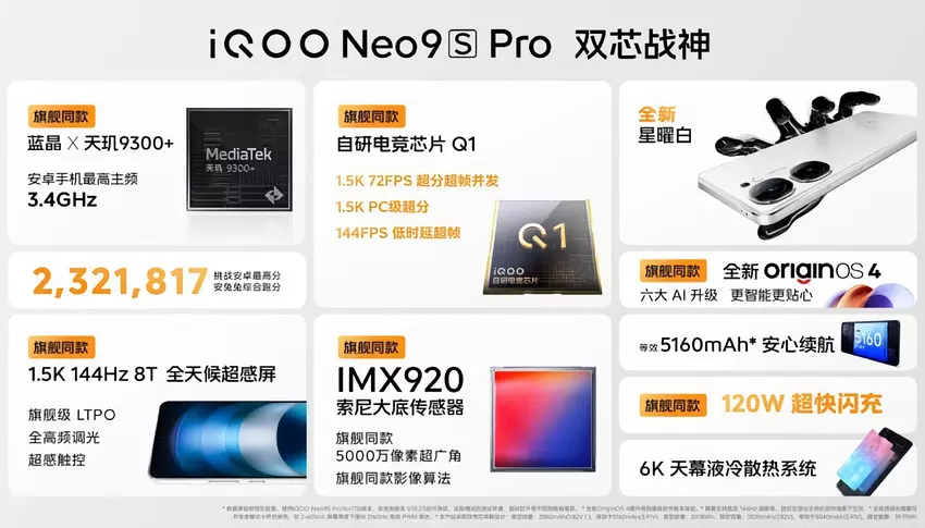 vivo onthult de iQOO Neo 9s Pro: 144Hz LTPO-scherm, Dimensity 9300+ processor en 5160mAh batterij met 120W opladen