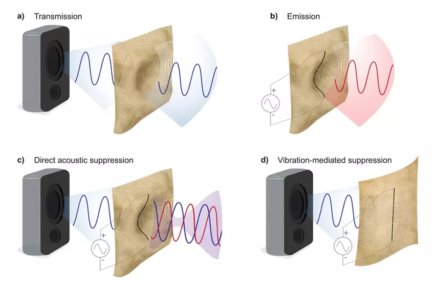 De onderzoekers gebruikten piëzo-elektrische vezels in de zijde, waardoor het materiaal kan vervormen wanneer het wordt blootgesteld aan een elektrische stroom, waardoor geluidsgolven worden gecreëerd en een effectieve geluidsisolatie ontstaat.