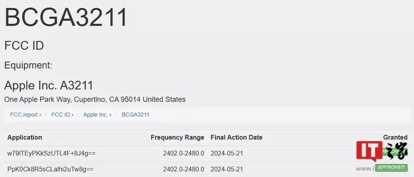 De gadget is gecertificeerd door het Amerikaanse bureau FCC met modelnummer A3211 en Bluetooth-module. Dat betekent dat de nieuwigheid waarschijnlijk eind mei of begin juni zal worden uitgebracht.