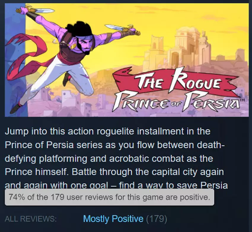 Tegelijkertijd krijgt The Rogue Prince of Persia goede recensies - 74% positief.