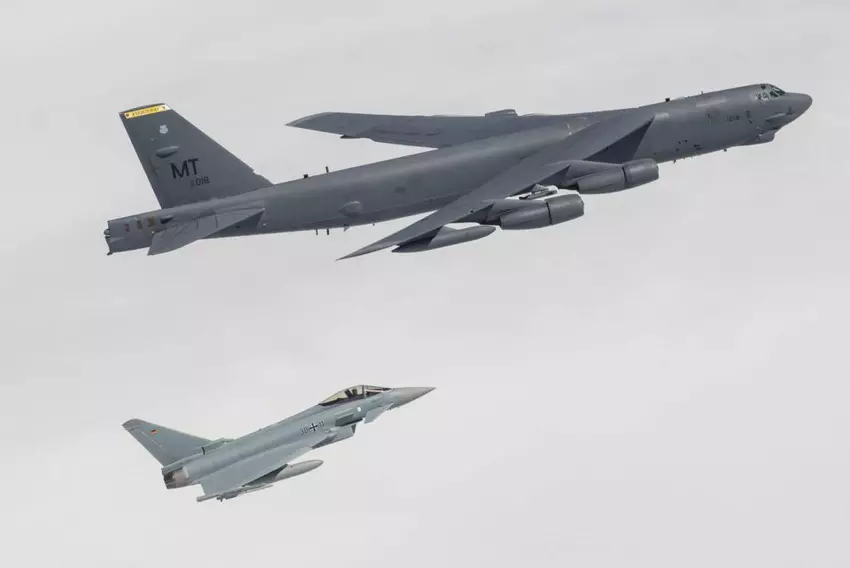 Tijdens de missie werden ze geëscorteerd door straaljagers. Met name twee Spaanse F-18 Hornets, twee Poolse MiG-29's en vijf Duitse Eurofighter Typhoons vlogen naast de B-52H Stratofortress.