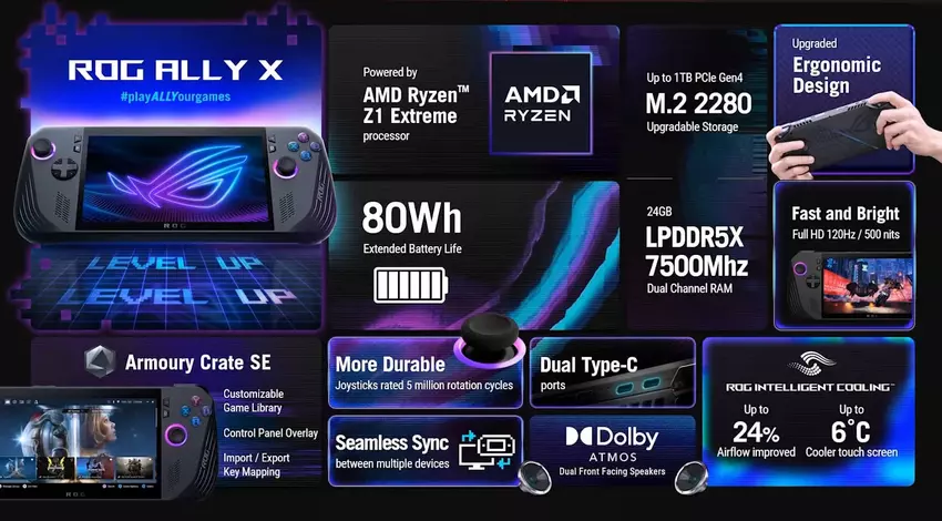 Volgens de fabrikant is de nieuwe gameconsole ontworpen met feedback van gebruikers in het achterhoofd. De AMD Ryzen Z1 Extreme processor blijft behouden, maar het apparaat is nu uitgerust met 24GB dual-channel LPDDR5X-7500 RAM in plaats van 16GB LPDDR5-6400.