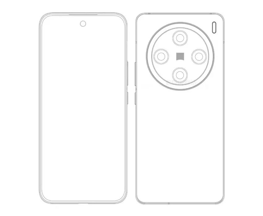 De schets laat zien dat het ZEISS logo in het midden van de cameramodule is geplaatst, wat bevestigt dat het toestel tot de X200 serie behoort. De Vivo X200 krijgt naar verluidt een 6,4-inch of 6,5-inch plat scherm met een resolutie van 1,5K, terwijl de X200 Pro een gebogen scherm behoudt. In de bovenste rand boven het cameragat aan de voorkant zit de luidspreker. Aan de rechterkant van het toestel zitten de volume- en aan/uit-knoppen.