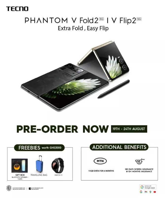 Tecno heeft, in aanloop naar de lancering van de Phantom V Fold 2 en Phantom V Flip 2 opvouwbare smartphones, pre-orders geopend voor de toestellen.
