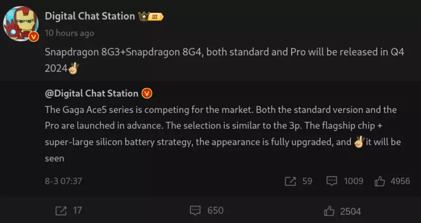 OnePlus maakt zich op voor de lancering van twee nieuwe smartphones in de Ace 5-serie - Ace 5 en Ace 5 Pro. Volgens een lek van een betrouwbare bron Digital Chat Station wordt de lancering verwacht in het vierde kwartaal van 2024.