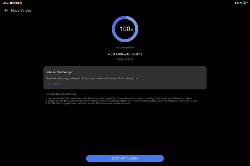 Volgens de officiële lijst met wijzigingen heeft Huawei een up-to-date beveiligingspatch in het systeem geïnstalleerd, die verschillende softwarekwetsbaarheden dicht.