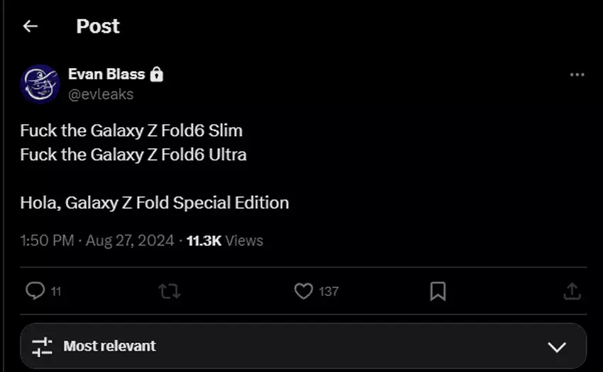 Eerder werd aangenomen dat het nieuwe toestel Galaxy Fold 6 Slim of Ultra zou gaan heten, maar volgens informatie van insider Evan Blass is de naam "Slim" of "Ultra" mogelijk niet waar. In plaats daarvan wordt het nieuwe product mogelijk "Special Edition" genoemd en wordt het een aparte lijn, vergelijkbaar met de Galaxy Watch Ultra.
