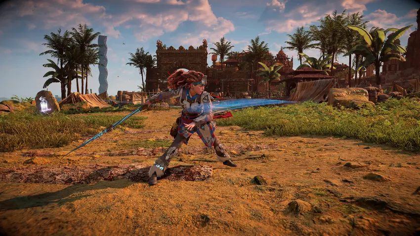- Speer: Het belangrijkste wapen waarmee Aloy snelle slagen uitdeelt. Naast gewone slagen kan de speer worden gebruikt om machines te onderscheppen, waardoor je ze kunt besturen als transportmiddel om je door de wereld te verplaatsen (zoals een robo-paard).