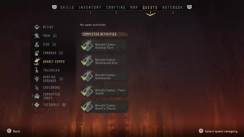 Bandietenkampen liggen verspreid over de wereld en zijn toevluchtsoorden voor vijanden die de plaatselijke bevolking terroriseren. Aloy kan deze kampen ontruimen, vijanden vernietigen en zo de veiligheid in een bepaalde regio waarborgen.